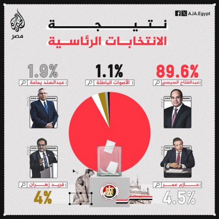 نوموړی په مسخره ټاکنو کي د ۸۹.۶% سلنه رایو په گټلو سره د مصر نوی ولسمشر اعلان سو...