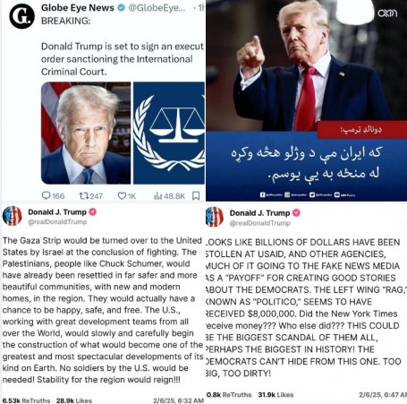 پانگوال نظام خپل عروج ته ورسېدلی دئ؛ داسي ښکاري ایلان مسک نن د سپیني ماڼۍ ټولواک دئ؛ ټرمپ لکه بدر منیر یوازي اخطارونو ته ملا تړلې او یا ئې د امریکا خیراتونو بندولو او ډالرو را وگرځولو ته؛ په عرب رسنیو کي د ایلان مسک د ماشوم زوی ويډیو پورته کښته کېږي چي ټرمپ ته په سپینه ماڼۍ کي څه وایي او هغه مخ ترې اړوي؛ د هغه خبري واضحي نه وي؛ اما د ټولنیزو رسنیو کارونکي په طنز وایي چي هلک ټرمپ ته وویل: ته اصلي ولسمشر نه ئې!